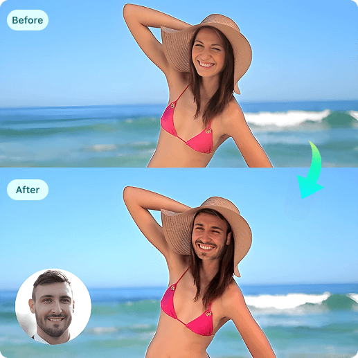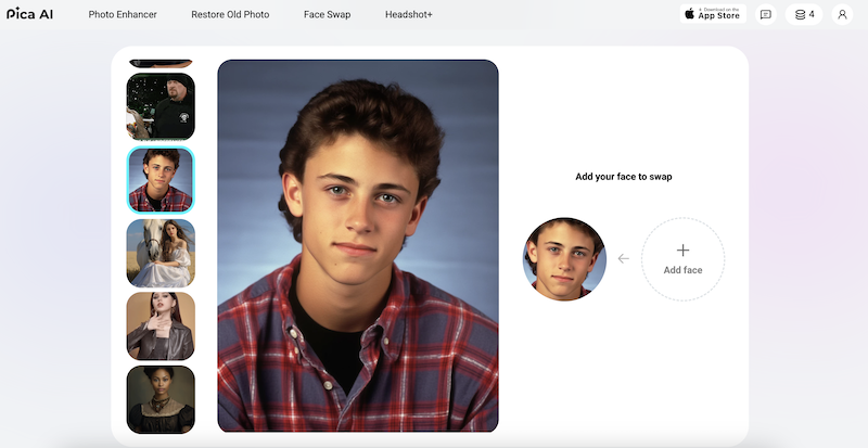 Tap on the purple “Add face” button to upload your personal image that wants to be transformed.